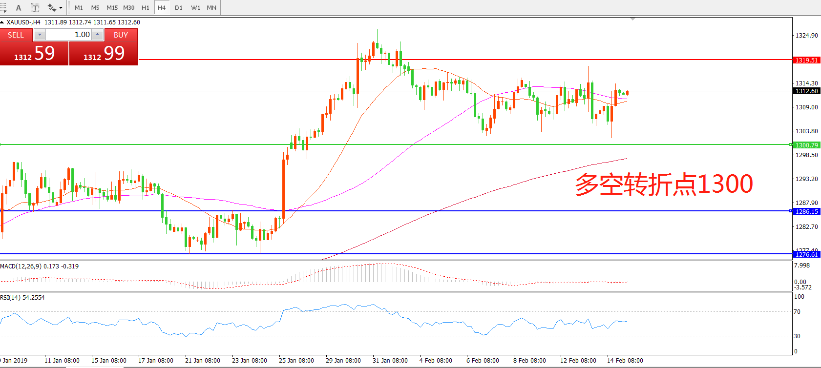 被称为“恐怖数据的”美国12月零售销售出炉,数据大幅下挫1.2%,创下逾九年最大跌幅,显示美国在去年年末经济活动明显放缓。与此同时公布的美国PPI以及初请数据也不及预期。在疲软的美国12月零售销售帮助下,多头在1300一线主要支撑区域展开反击,帮准金价重回1310上方收盘。近期黄金走势颇为震荡,多空连续展开争夺,但依旧未能取得决定性的进展,以宽幅震荡思路对待较好。