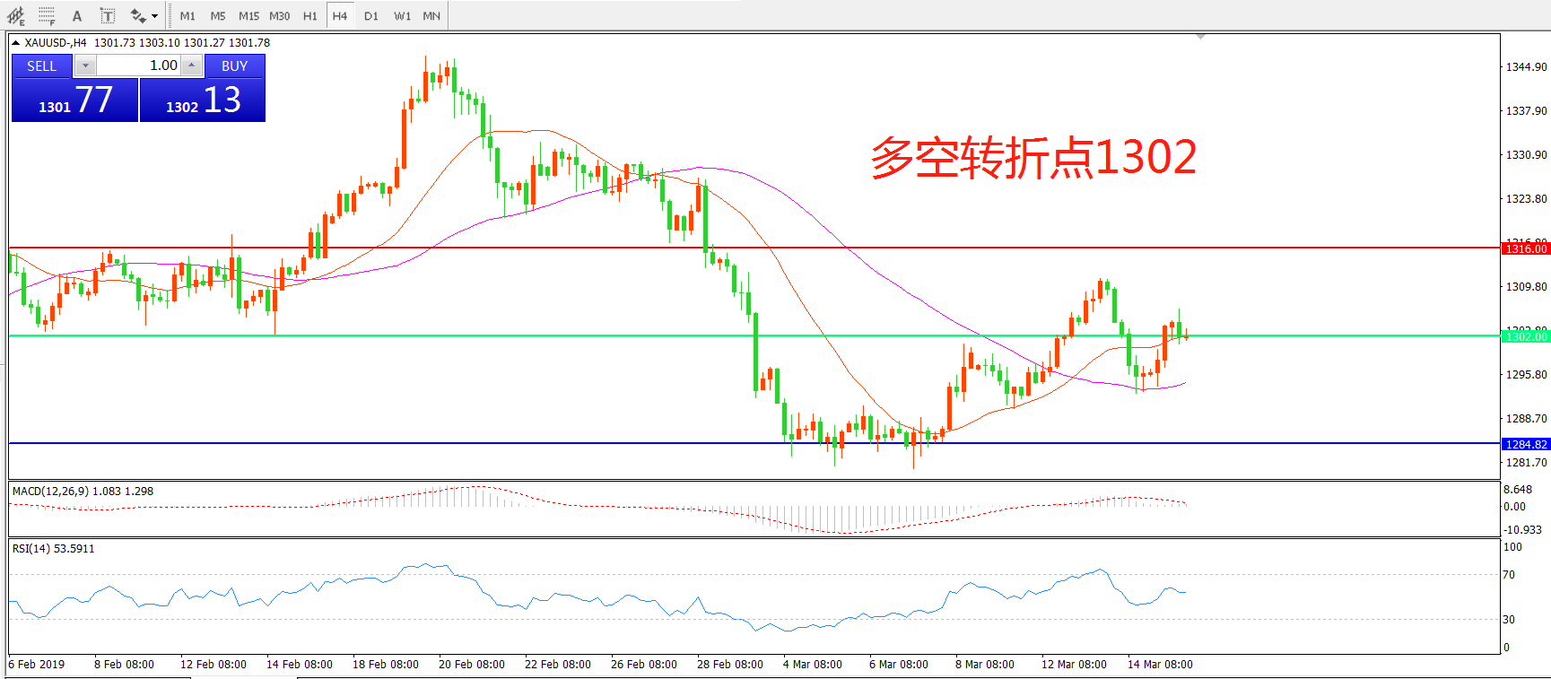多空转折点:1302.00
