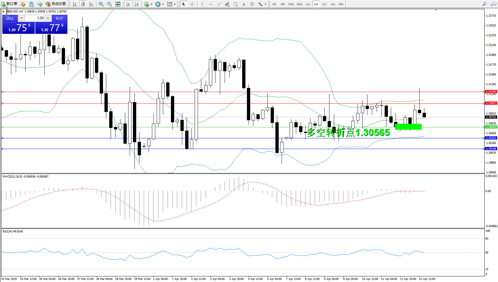 交易策略:1.30565上方看涨,目标1.310211.31244
