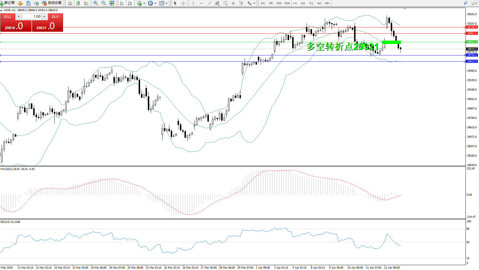 恒指HK50 ——1小时K线图显示: