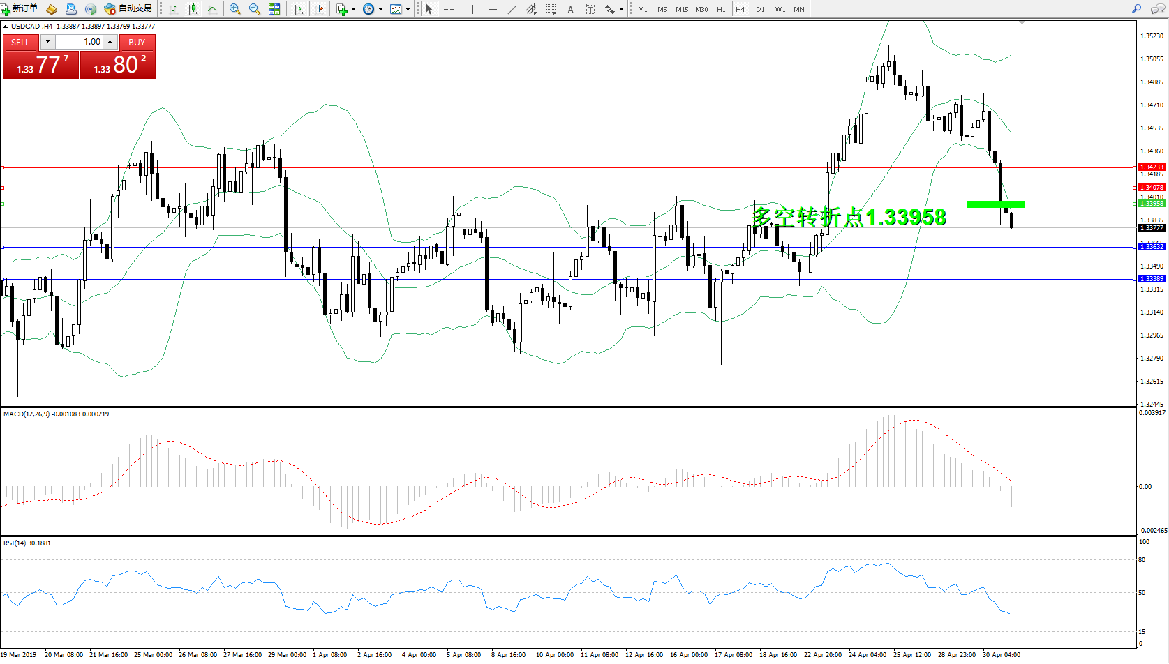 美元加元USDCAD——4小时K线图显示: