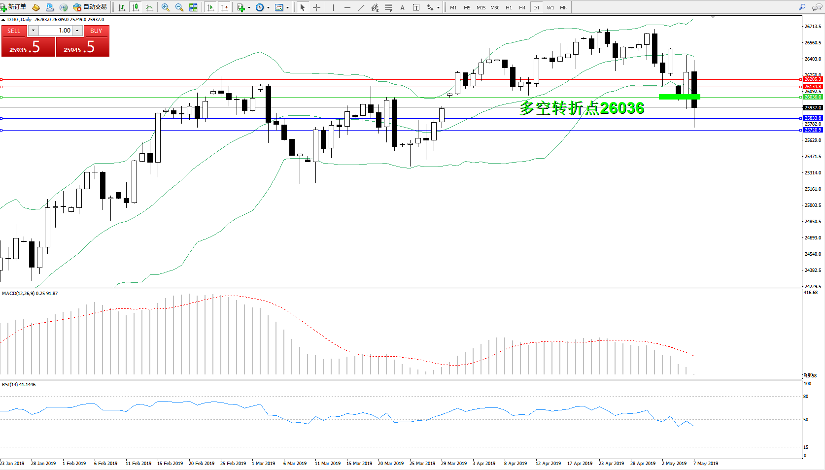 全球股市涨跌互现,投资者态度谨慎。同时,美股投资者情绪紧张,避险氛围仍然浓厚,道琼斯工业平均指数收跌473.39点,跌幅1.79%,创1月3日以来最大单日跌幅,报25965.09点。美股大型科技股集体下跌,尾盘普遍拉涨缩窄跌幅。热门中概股集体重挫,老虎证券大跌近15%,不到一个月已腰斩。中美全面经济对话中方牵头人刘鹤将于5月9日至10日访美,与美方就经贸问题进行第十一轮磋商。