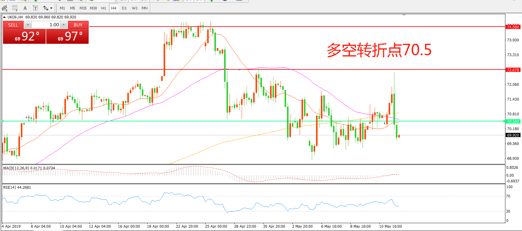 交易策略:在70.50之下看跌,目标68.50 66.00