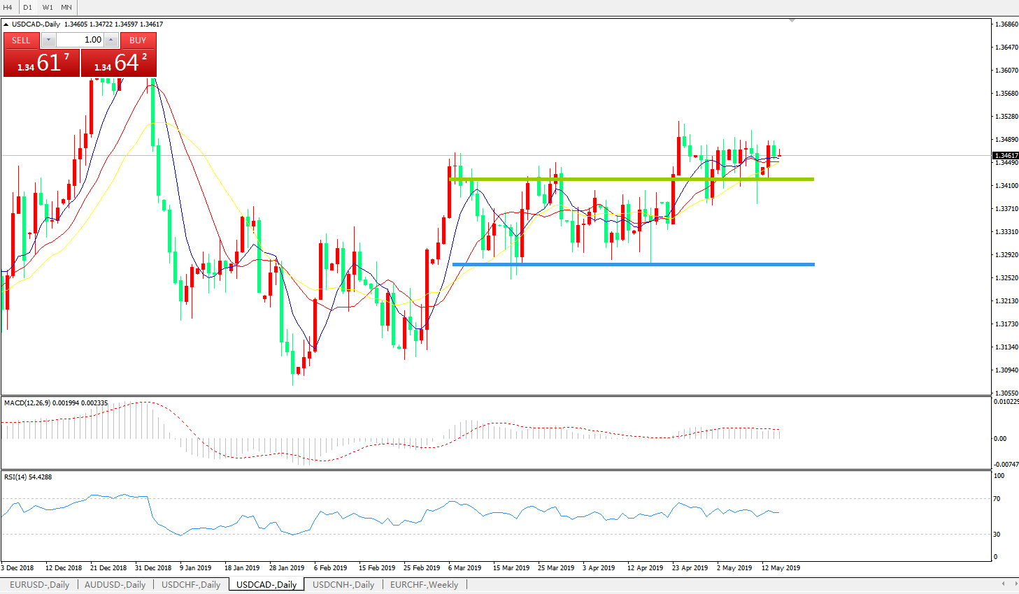美元兑加元USDCAD 日线图: