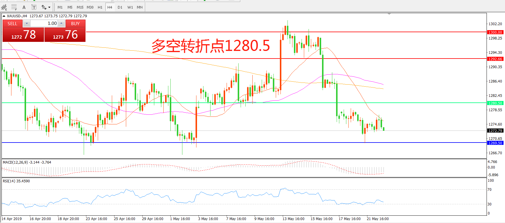 多空转折点:1280.50
