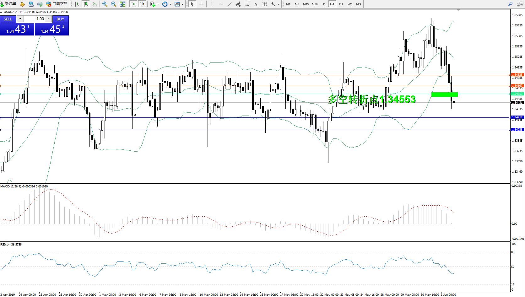 交易策略:1.34553下方看跌,目标1.342121.34038