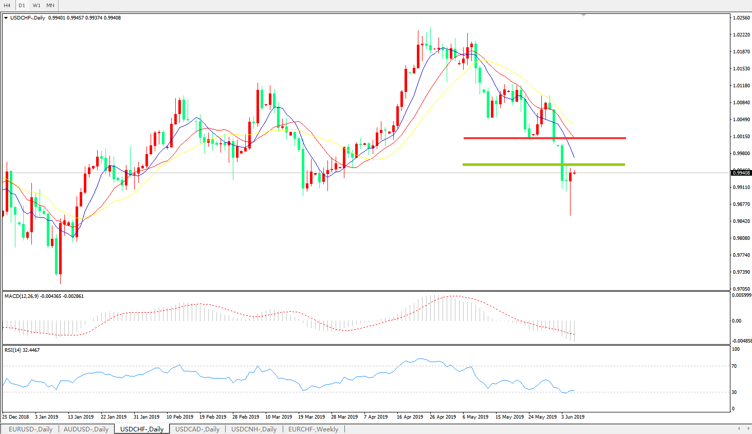 美元瑞郎USDCHF——日K线图显示: