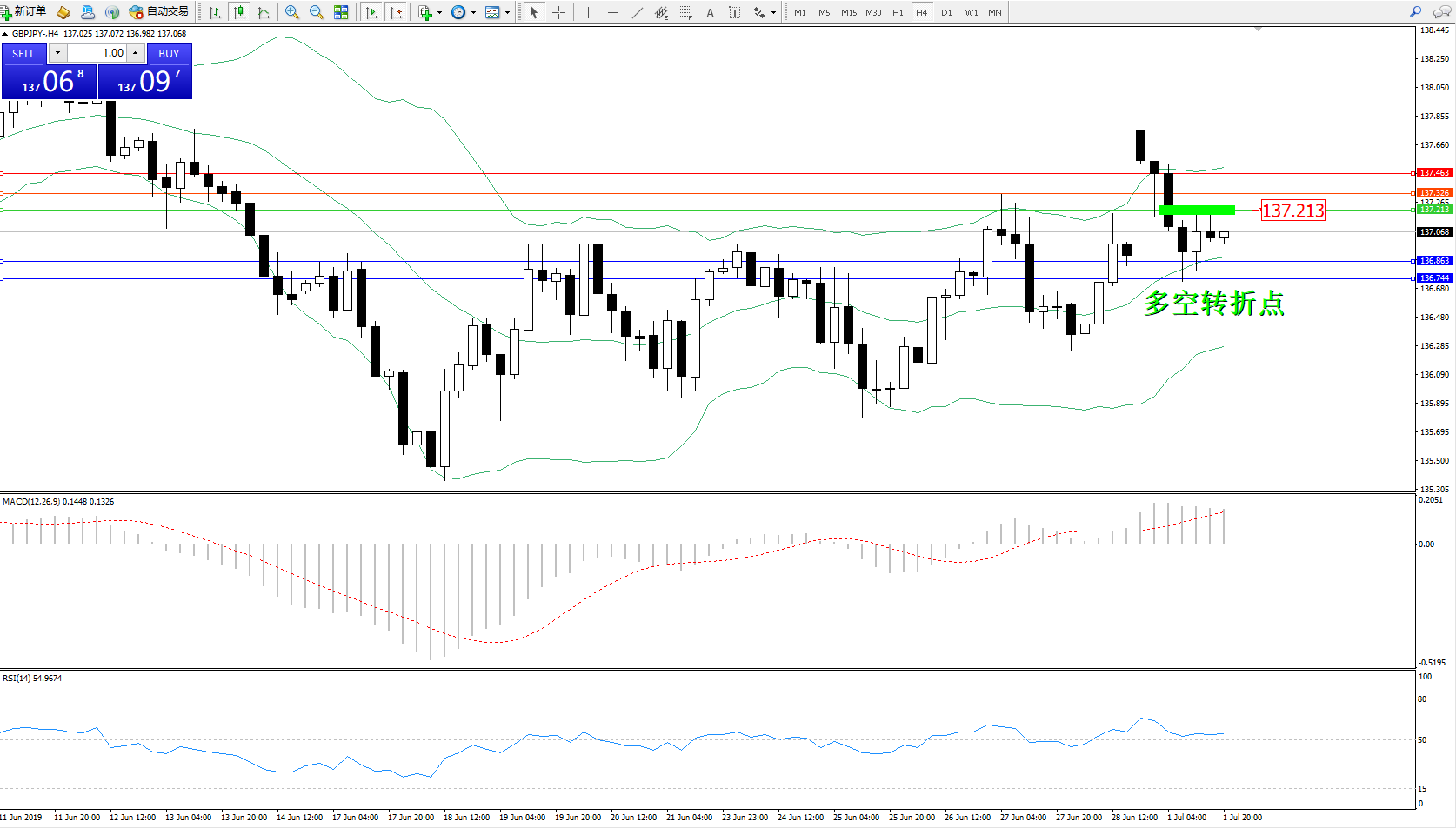 交易策略:137.213下方看跌,目标136.863136.744