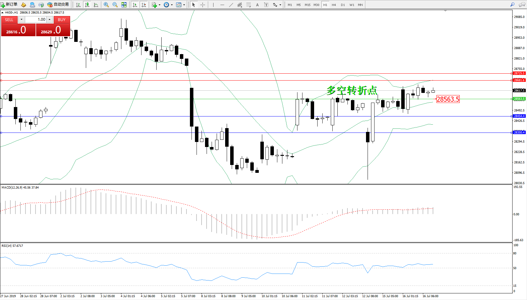 恒指HK50 ——1小时K线图显示: