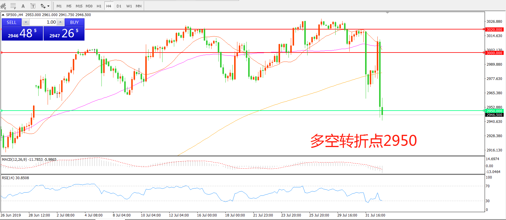 交易策略:在2950.00之下看跌,目标2910.00     2865.00