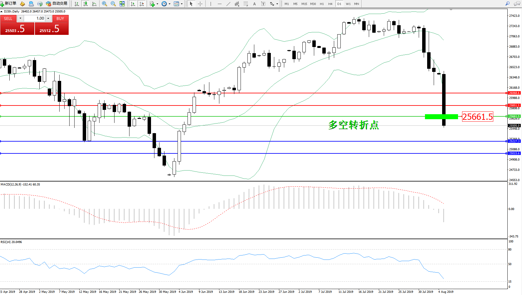 道琼斯指数8月5日(周一)收盘下跌767.30点,跌幅2.90%,报25717.74点。由于日前美方宣称拟对3000亿美元中国输美商品加征10%关税,严重违背中美两国元首大阪会晤共识,国务院关税税则委员会对8月3日后新成交的美国农产品采购暂不排除进口加征关税,中国相关企业已暂停采购美国农产品。中方有关部门表示,中国市场容量大,进口美国优质农产品前景光明,但希望美方认真落实中美两国元首大阪会晤达成的共识,言而有信,落实承诺,为两国农业领域合作创造必要条件。