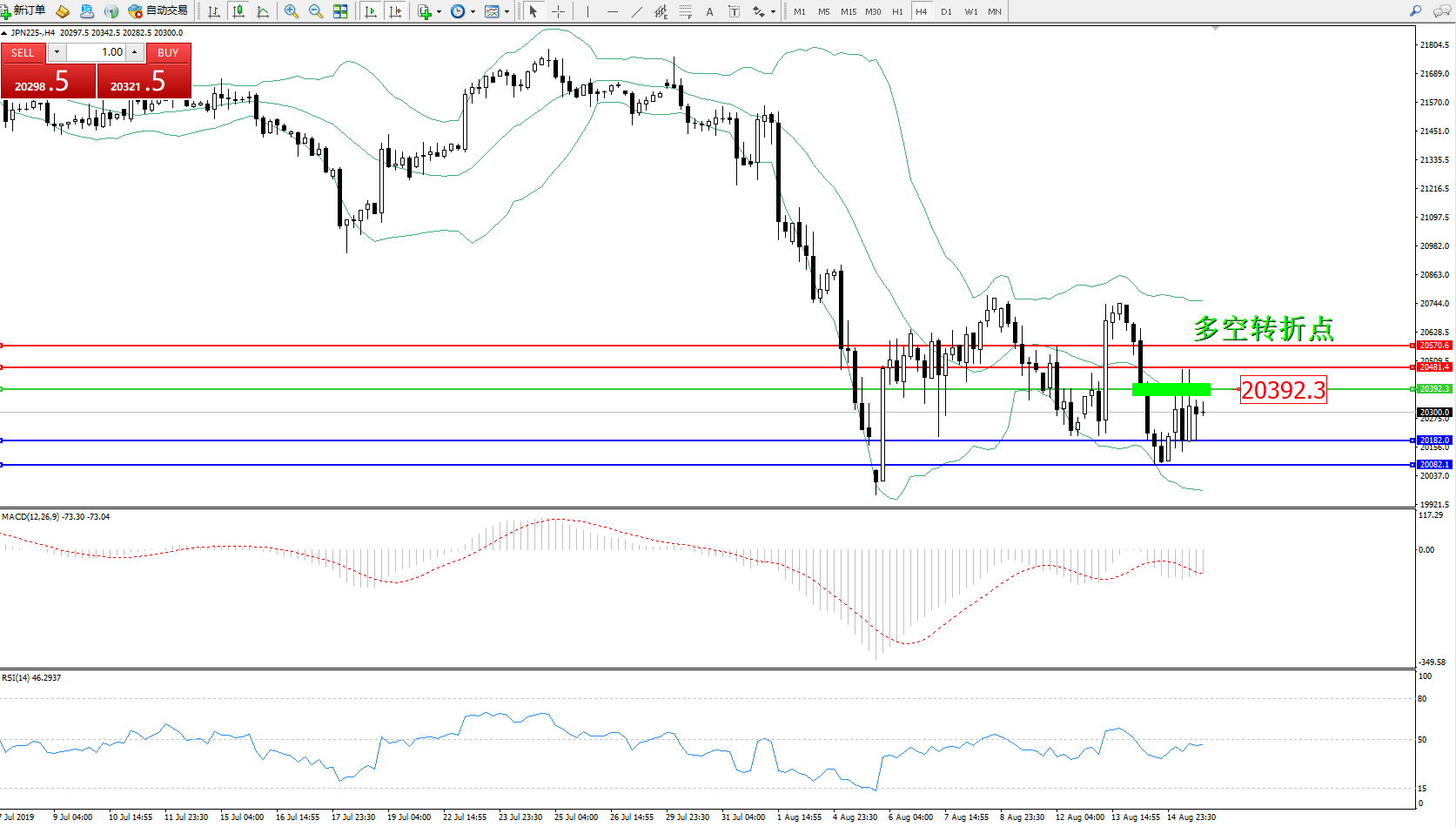 日经指数JPN225——4小时K线图: