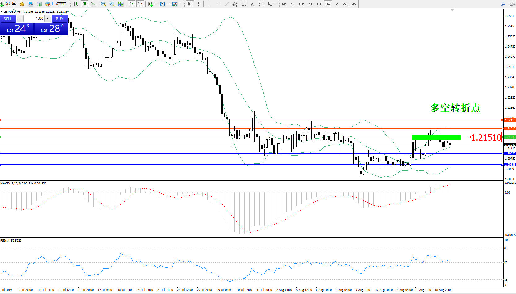 交易策略:1.21510下方看跌,目标1.20930、1.20536