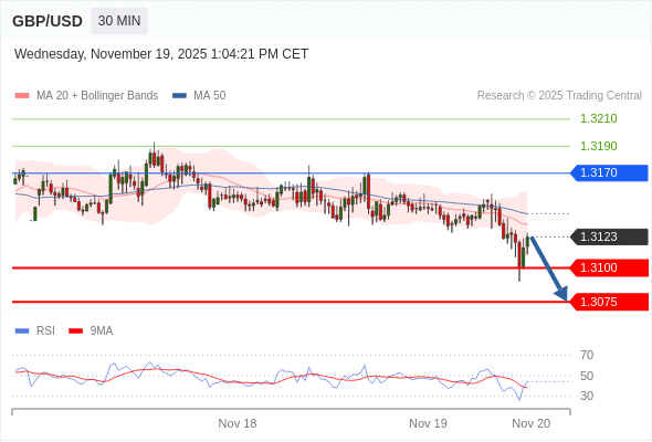 在 1.3170 之下,看跌,目标价位为 1.3100 ,然后为 1.3075 。