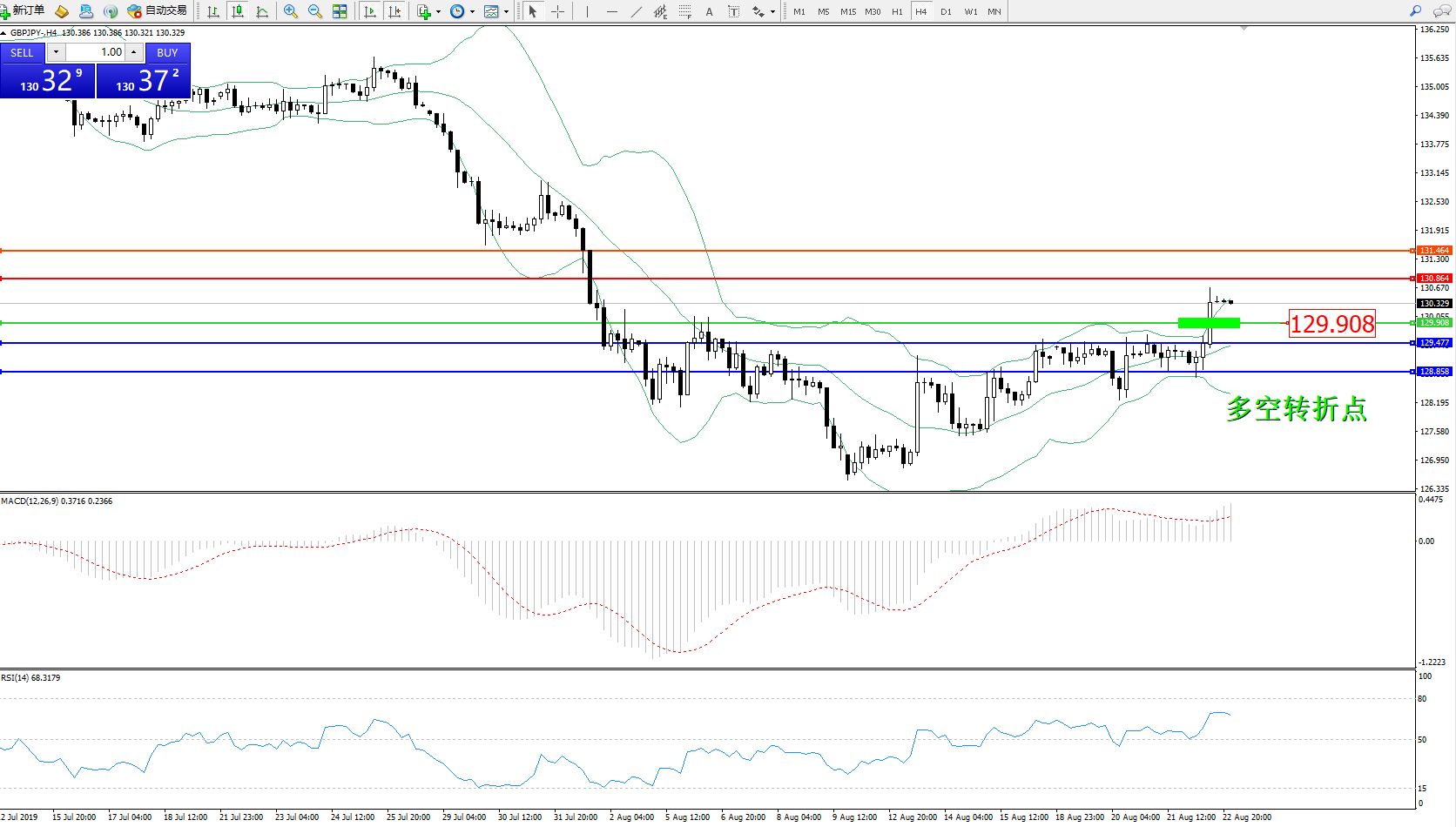 交易策略:129.908上方看涨,目标130.864、131.464