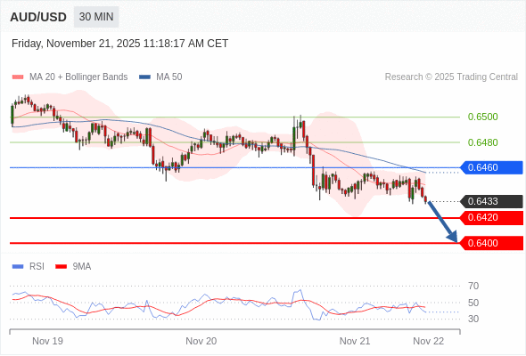在 0.6480 之下,看跌,目标价位为 0.6420 ,然后为 0.6400 。