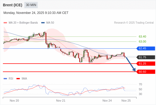 在 62.45 之下,看跌,目标价位为 61.25 ,然后为 60.60 。