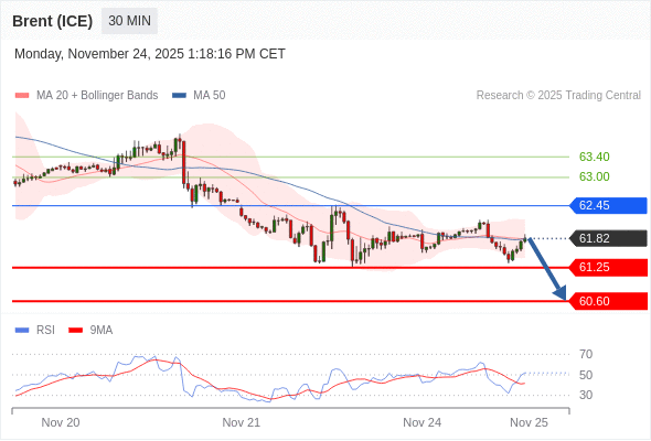 在 62.45 之下,看跌,目标价位为 61.25 ,然后为 60.60 。