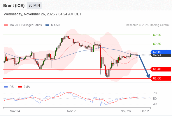 在 62.15 之下,看跌,目标价位为 61.40 ,然后为 61.00 。