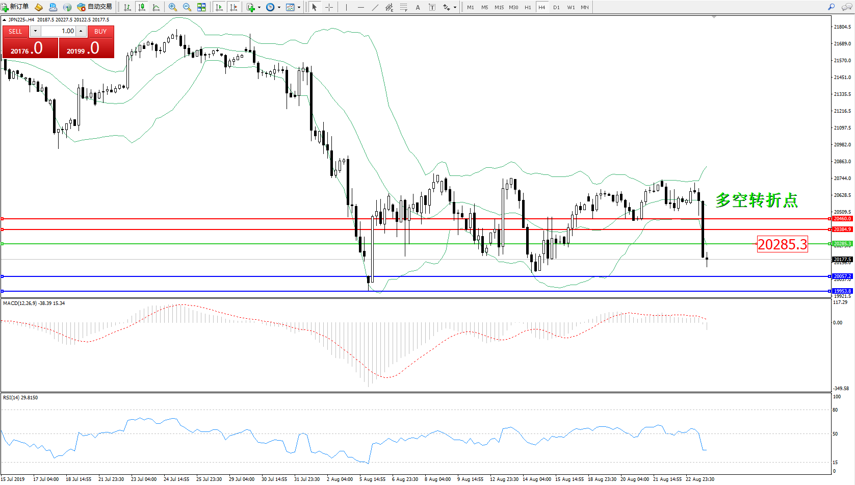 日经指数JPN225——4小时K线图: