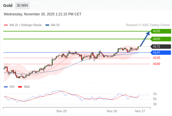 在 4147 之上,看涨,目标价位为 4203 ,然后为 4235 。