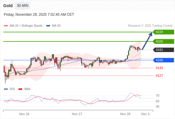 在 4160 之上,看涨,目标价位为 4200 ,然后为 4220 。