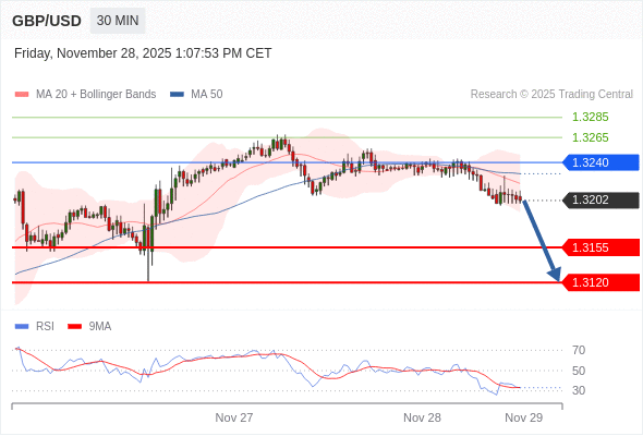在 1.3240 之下,看跌,目标价位为 1.3155 ,然后为 1.3120 。