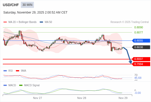 交易策略: 看跌,在 0.8055 之下。