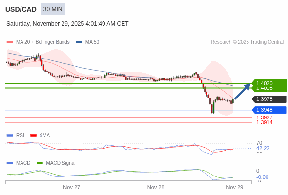 替代方案: 在1.3948以下,期待1.3927和1.3914。