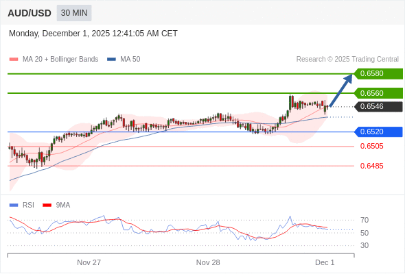 在 0.6520 之上,看涨,目标价位为 0.6560 ,然后为 0.6580 。