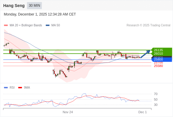 在 25800 之上,看涨,目标价位为 26010 ,然后为 26135 。