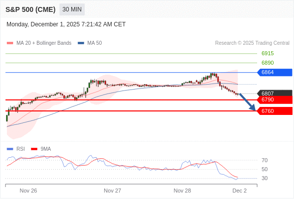 在 6864 之下,看跌,目标价位为 6790 ,然后为 6760 。
