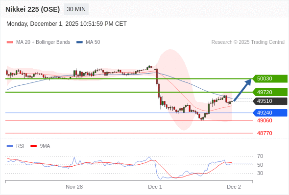 在 49240 之上,看涨,目标价位为 49720 ,然后为 50030 。