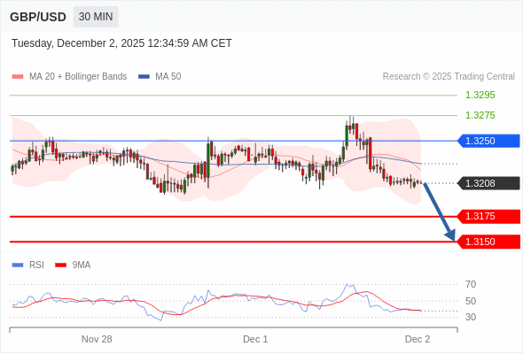 交易策略: 在 1.3250 之下,看跌,目标价位为 1.3175 ,然后为 1.3150 。