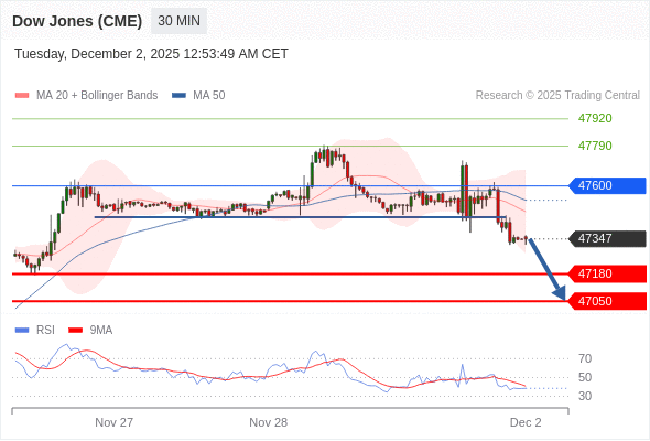 在 47600 之下,看跌,目标价位为 47180 ,然后为 47050 。