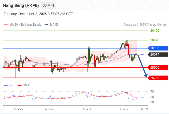 香港恒生指数期货 当日内: 短期关键阻力位在26160。