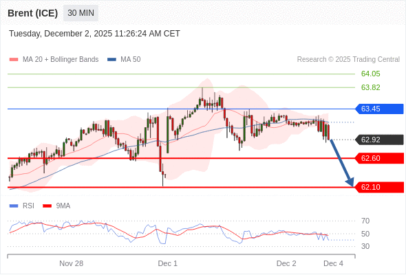 在 63.45 之下,看跌,目标价位为 62.60 ,然后为 62.10 。