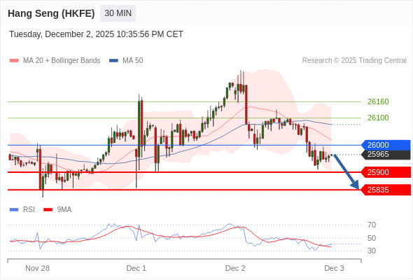 在 26000 之下,看跌,目标价位为 25900 ,然后为 25835 。