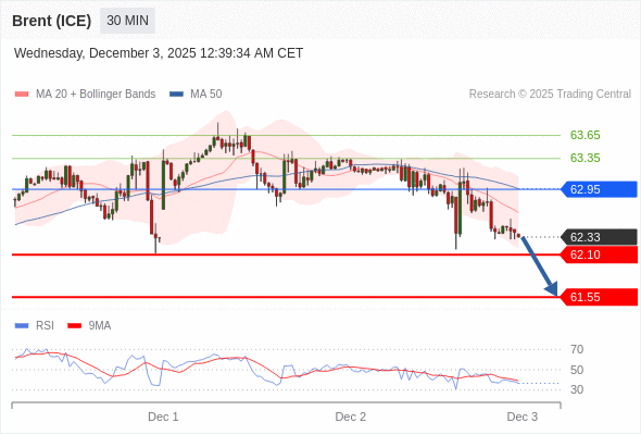 在 62.95 之下,看跌,目标价位为 62.10 ,然后为 61.55 。