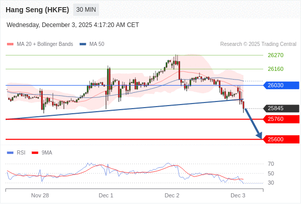 在 26030 之下,看跌,目标价位为 25760 ,然后为 25600 。