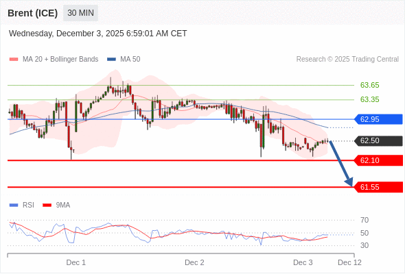 在 62.95 之下,看跌,目标价位为 62.10 ,然后为 61.55 。