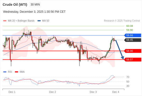 在 59.66 之下,看跌,目标价位为 58.96 ,然后为 58.57 。