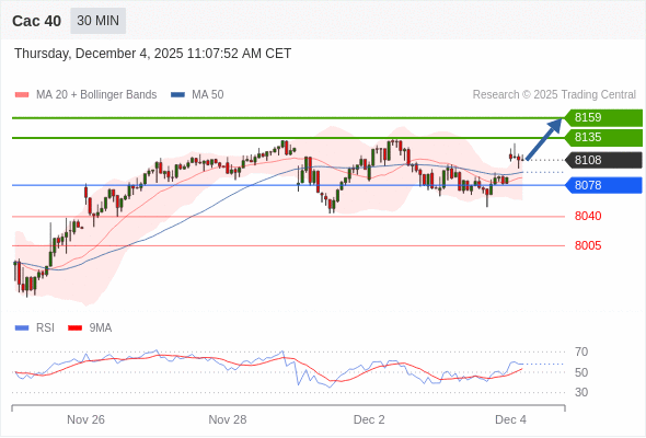 在 8078 之上,看涨,目标价位为 8135 ,然后为 8159 。