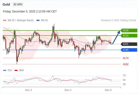 在 4190 之上,看涨,目标价位为 4218 ,然后为 4228 。