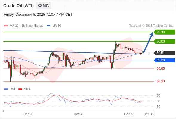 在 59.20 之上,看涨,目标价位为 60.00 ,然后为 60.40 。