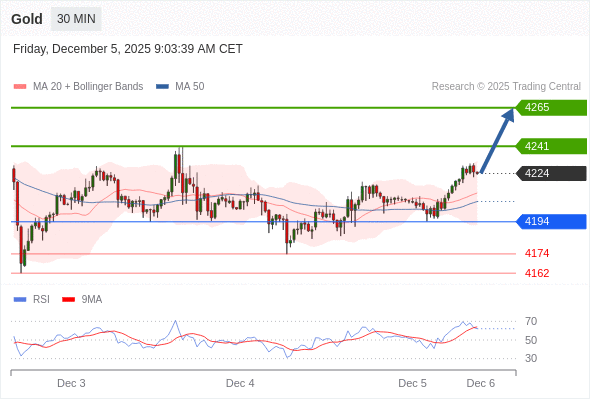 在 4194 之上,看涨,目标价位为 4241 ,然后为 4265 。