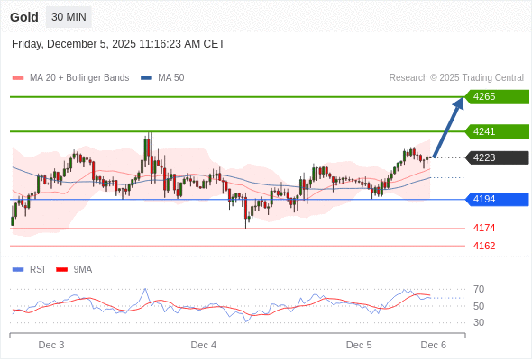 在 4194 之上,看涨,目标价位为 4241 ,然后为 4265 。