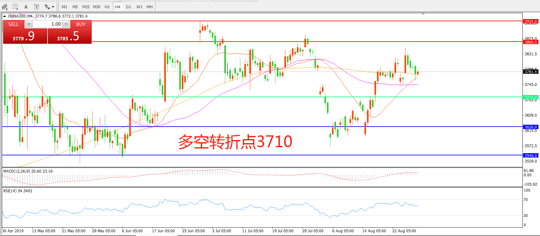 多空转折点:3710.00