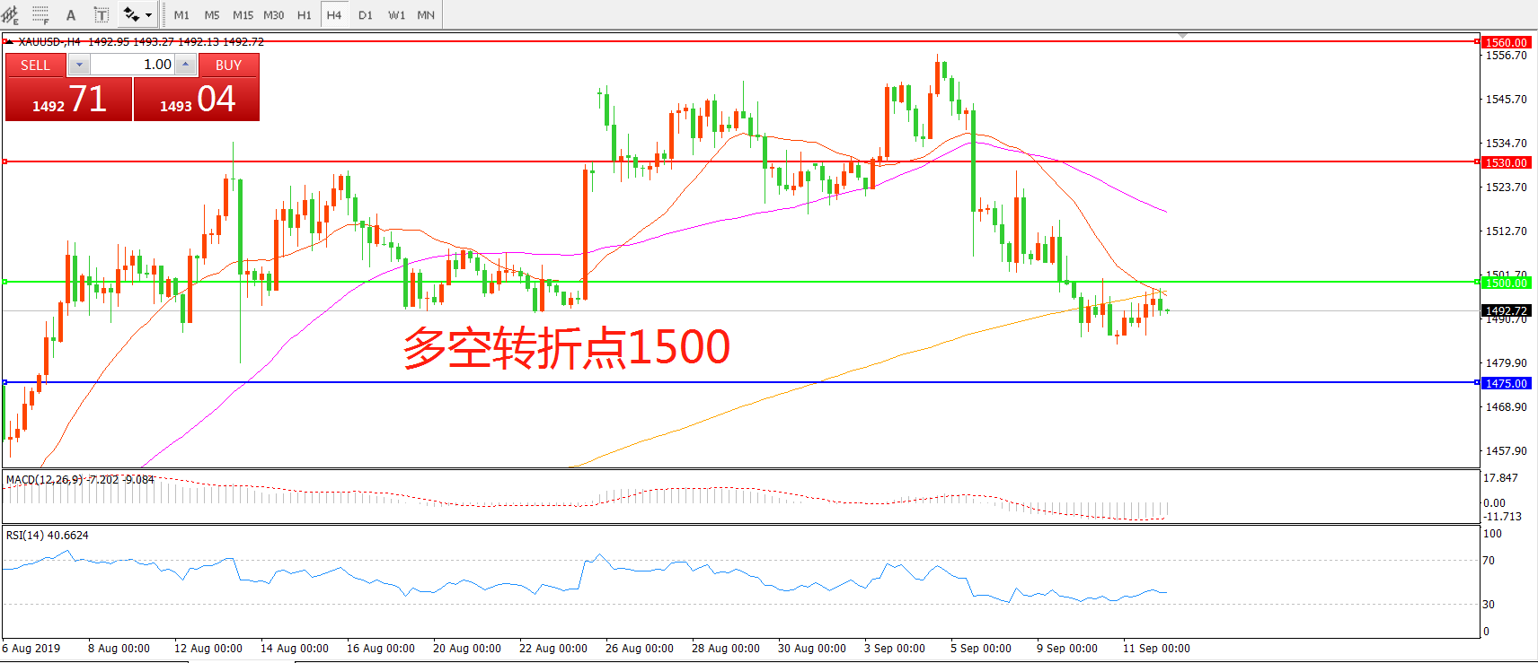 交易策略:在1500.00之下看跌,目标1475.00    1450.00