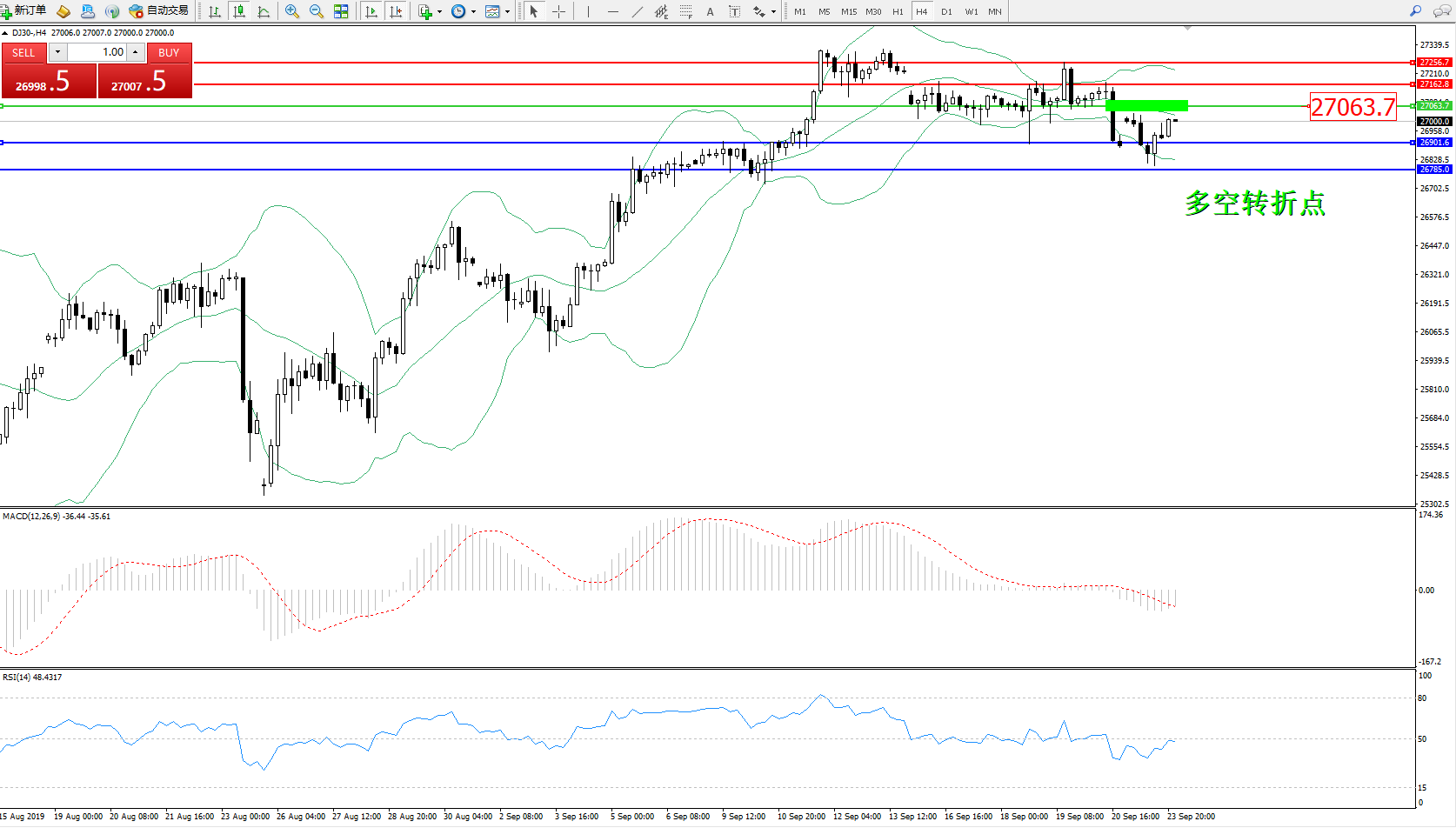 道琼斯指数9月23日(周一)收盘上涨15.20点,涨幅0.06%,报26950.26点。美国股市基本持平,交投清淡,9月美国服务业就业分项指数九年半以来首次萎缩;数据还显示,美国9月制造业活动有所上升,超过预期。与此同时,更多美联储官员评论显示决策者准备在必要时采取行动。全球增长正在放缓,但美国经济增长依然不俗,这令人充满希望,但仍然不完全明朗。